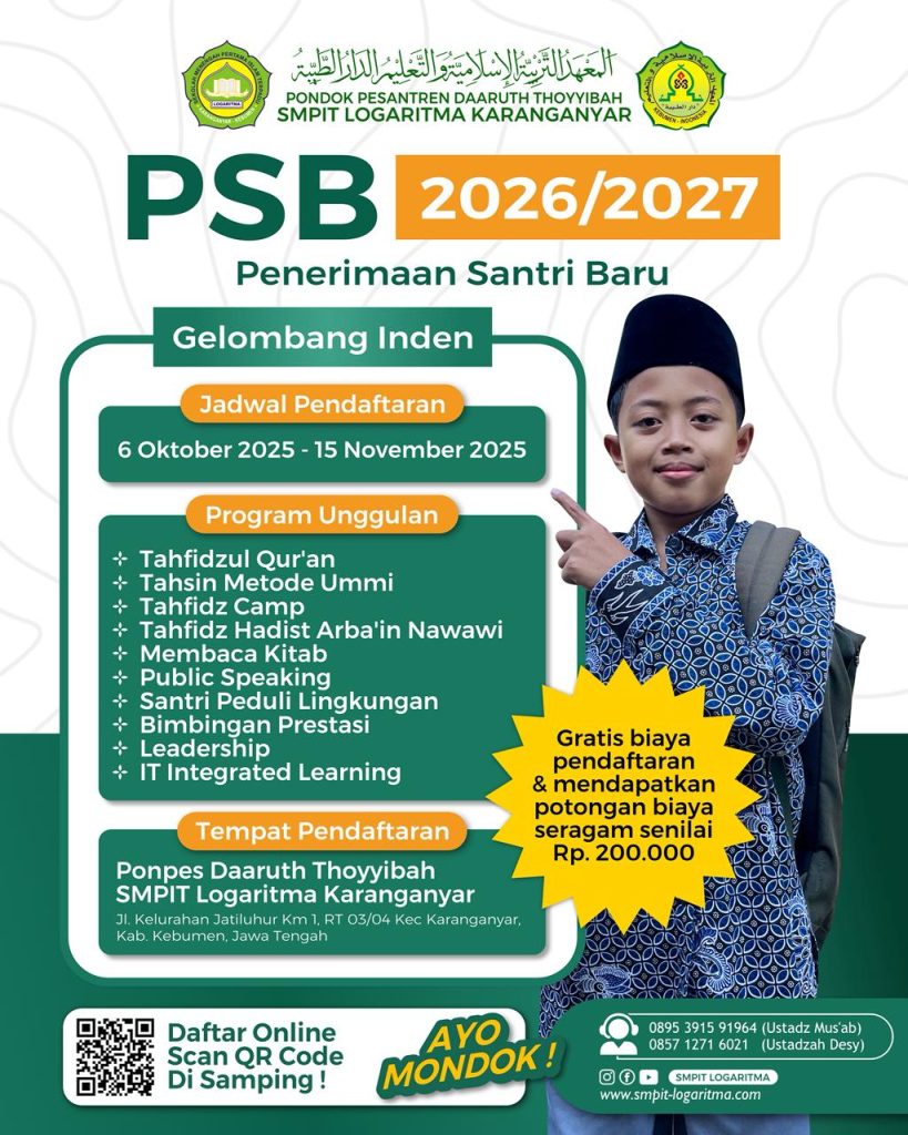 Silahkan download brosur PSB SMPIT Logaritma 2025-2026 (disini)